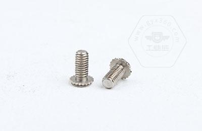 在使用過(guò)程中需在基體上開(kāi)一個(gè)小孔,將壓鉚螺釘放入孔內(nèi),采用鉚壓設(shè)備平行的均勻的在頭部平壓,因壓鉚螺釘?shù)念^部下有齒紋壓花,當(dāng)壓入后,基體在壓鉚螺釘?shù)闹車(chē)a(chǎn)生變形,和齒紋發(fā)生咬合現(xiàn)象,從而形成一個(gè)牢固的外螺紋。