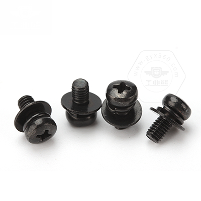 碳鋼4.8級黑色鋅鎳合金(48/360h)十字槽盤頭帶平彈墊組合螺釘GB9074.4N