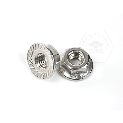 • 產(chǎn)品描述:DIN6923 六角法蘭帶齒螺母,又名六角法蘭面帶齒螺母、六角法蘭帽、六角帶墊帶防滑齒螺帽、法蘭面防松帶齒螺母、花齒法蘭防松螺母。DIN6923 六角法蘭帶齒螺母,法蘭面與六角螺母一體成型,法蘭面帶花齒比平面法蘭鎖緊力更強。法蘭帶齒的設計具有防滑止動的作用,裝配時不需要額外使用平墊、彈墊,使用起來更為方便。DIN6923標準規(guī)定了螺紋規(guī)格為M5-M20;性能等級為碳鋼8、10、12和不銹鋼A2-7